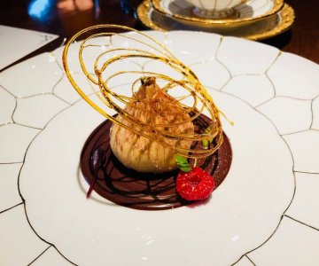 Such an experience includes tea served in Meissen teacups, confectionaries on hard-paste porcelain also from Meissen, and glittering, sculpted crystal Baccarat glasses for bottled Châteldon sparkling mineral water.