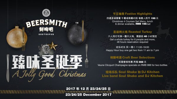 Scrumptious and fun Christmas treats await at Beersmith. Impress your loved ones with our special 4 courses Christmas set menu meticulously prepared by our talented Chef Hoo, from appetizer platter, signature soup to mouthwatering main course including roasted turkey breast, and festive dessert.