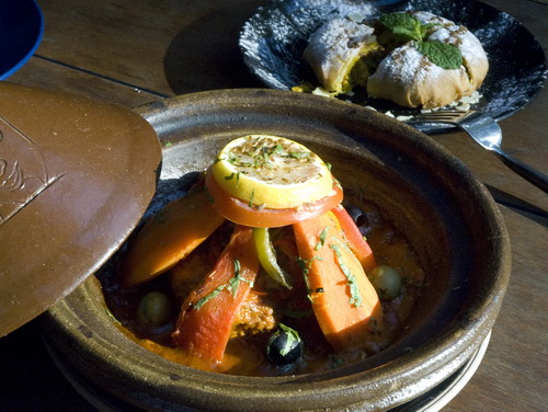 For our visit we tried the Harira soup (RMB 45) – a delicious lentil and tomato soup served with a wedge of lemon – and the Tajine d’Agneau aux Pruneaux (RMB 128). The latter consisted of a leg of lamb served with potatoes, sliced peppers and a stewed prune sprinkled with sesame seeds. While the sauce, with its tumeric and parsley accents, had us wiping the plate clean with piping hot pita bread, the tender mutton could have used a bit more time simmering over the fire for even more infused flavor.