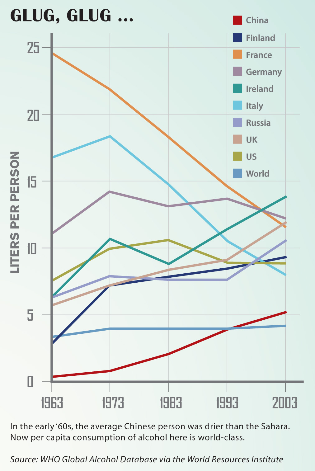 In the early ‘60s, the average Chinese person was drier than the Sahara. Now per capita consumption of alcohol here is world-class.