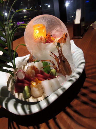 The cold soup was addictive. Amazingly silken and creamy in texture, a spectrum of flavors layered one on top of another, from roast white sesame and white miso sauce to bonito and mirin. The egg pudding in the middle of the soup continued the smoothness, and nicely contrasted with fresh poached prawn, sliced cucumber and julienned scallion.
