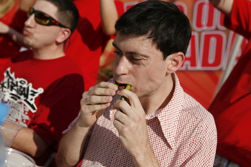 Gabe "Dr Pepper" Monroe is the veteran champion of our chilli pepper contest, in our 2011 contest I witnessed him single-handedly eat 60 chilli peppers before claiming his long honored title. I've got to hand it to him, the man knows how to eat his chillies. Monroe recommends training with Infinity Sauce, which can be delivered to China quickly. If you can't get that, browse any grocery store aisle for some original Sichuan hot sauce.