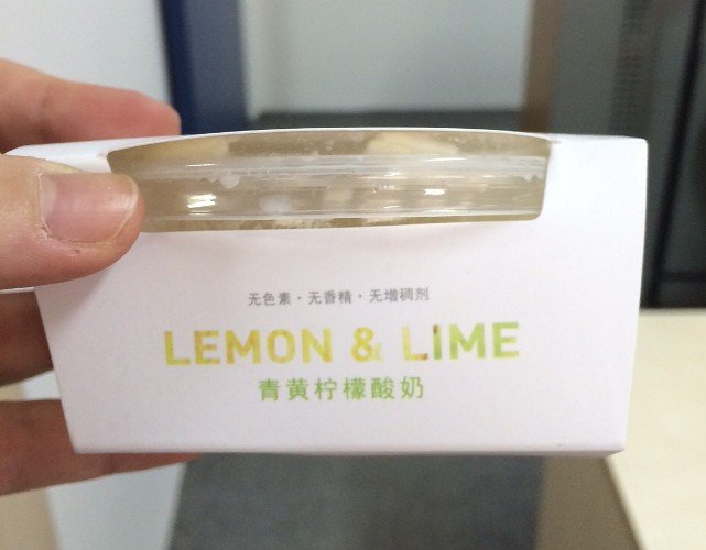 As of right now, the options are lemon and lime, or rose and coconut. Each tub is RMB 15. The owner tells us that vanilla will be an option in the near future. Yum. We tried lemon and lime, which comes in a little plastic tub, and is wrapped in a sleeve with a cute watercolor painting of a lemon.