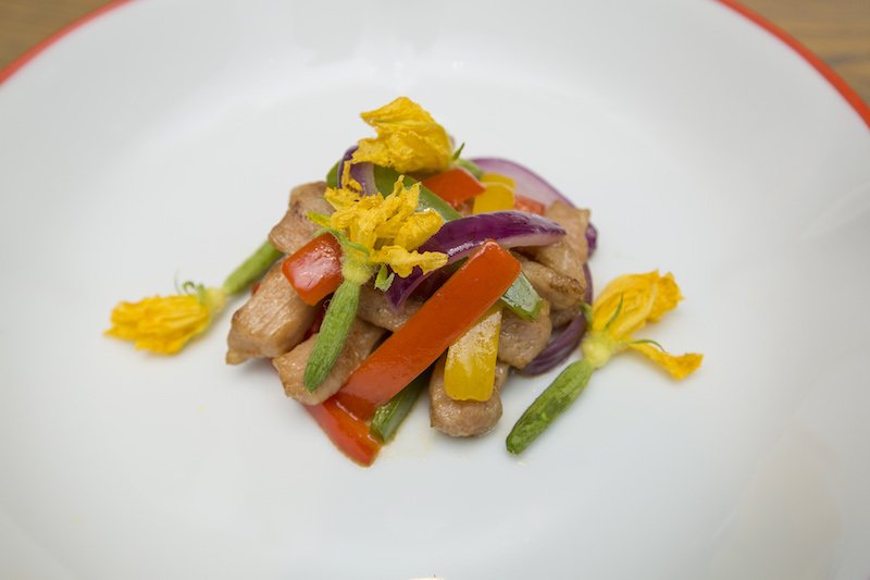 Then comes the more simple, but none-the-less delectable stir-fried sliced pork with cucumber flower. The dish’s vegetables are vibrantly colorful and varied, resembling a rainbow amongst the morsels of sizzling pink pork.