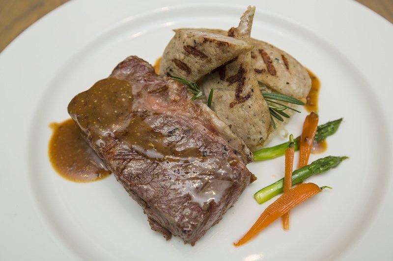 Chargy says he and his staff are also pleased to have established a regular source of pristine red meat from Stockyard Beef. The Australian farming company ships world-renowned Wagyu and Angus cattle (from Japan and Scotland, respectively), and raises those herds on their expansive ranch in Brisbane. Chargy says that environment is ideal for such high quality cattle, explaining: “The cows can roam, so that means the beef will marbled.” He says this results in far higher quality steaks, because the marbled fat is more evenly dispersed, as opposed to many Wagyu beef suppliers in Japan, who do not have such spacious ranges, resulting concentrated globs of fat in their beef because of their cattle’s docility. Customers will be able to sample this premium-sourced beef during the Brasserie New Year’s dinner, which features a roasted black Angus sirloin and a side of potatoes as a main course. Customers can also opt for a smoked cocktail sausage and sauerkraut with creamy pepper sauce instead.