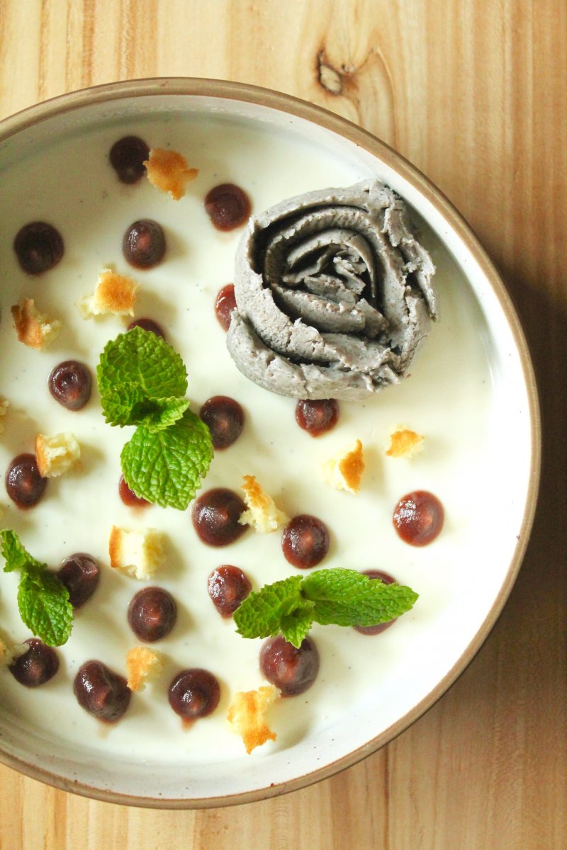 Obentos: Yoghurt Panna Cotta with Red Bean and Black Sesame Ice Cream (RMB 48)