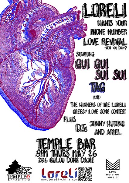Loreli are having a party to announce the winners of their Cheesy Love Song songwriting contest. The winners will perform as well as Guiguisuisui and TAG and the party will continue into the night with the cheesy picks of DJs Jonny Hutong and Ariel. Free. 8pm. Temple