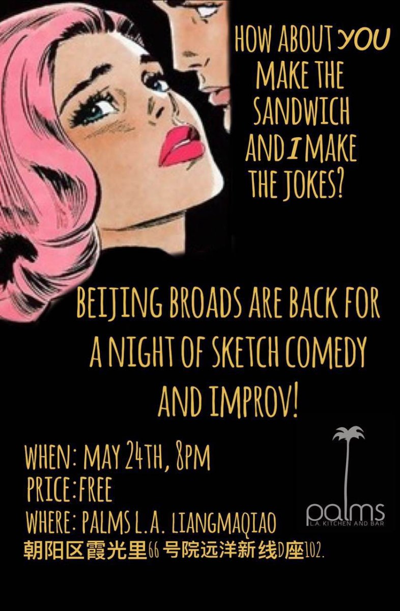 Beijing Broads all-female comedy group are back with another night of sketch comedy and improv at Palms LA (the Liangmaqiao location). We were there last time, and it was incredible. Make sure you get down there and support them. Free, 8pm. Palms LA Kitchen and Bar (Liangmaqiao)