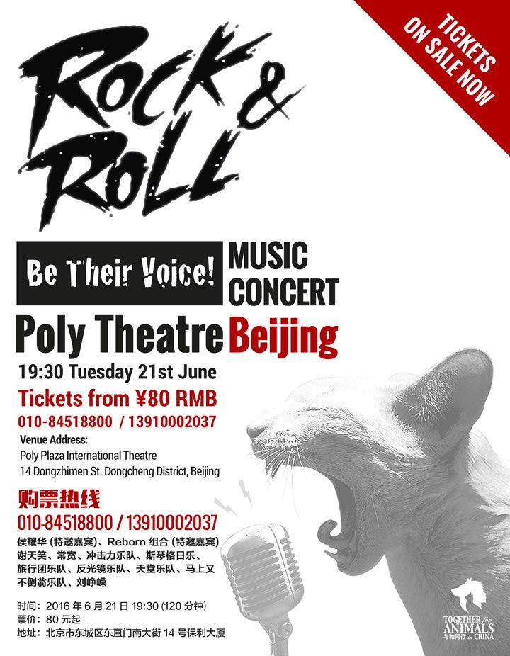 This June 21, at 7.30pm, a rock concert titled 'Be Their Voice' will be held at the Poly Theatre at Dongsi Shitiao Station in Beijing, all in the name of animal rescue. If you like animals and music, there is simply no excuse.
