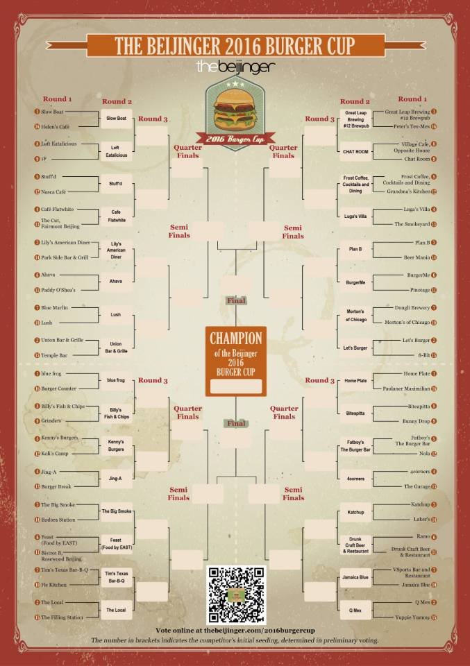 In our winner-takes-all Burger Cup, only the most mouthwatering, succulent burgers survive to move onto the next round. And after three weeks of tastings and a barbecue for 4,500, first blood has now been drawn: the burger lovers of Beijing have made their first cuts in a furious opening round of voting.