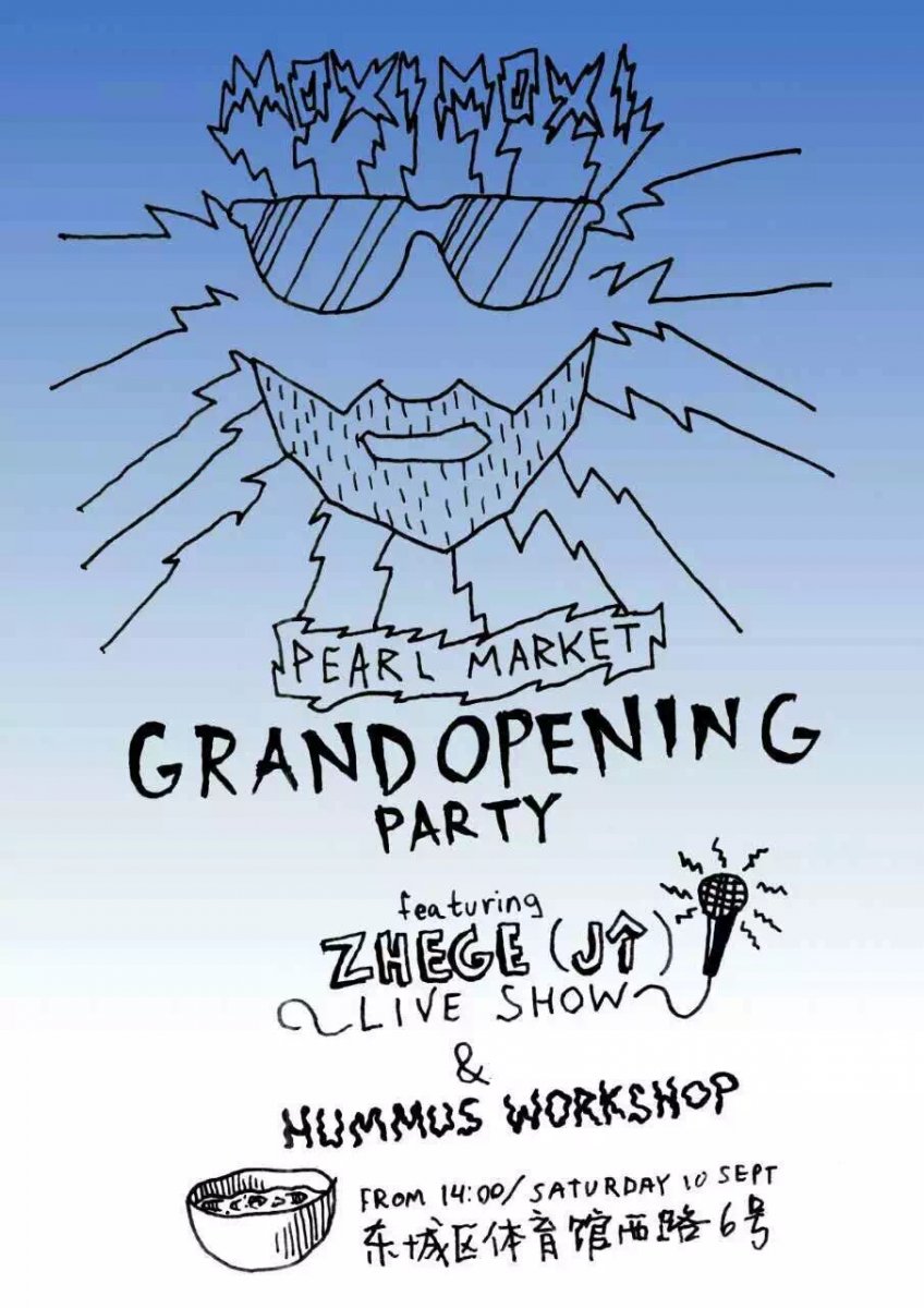 Their grand opening street party will feature hummus, a hummus-making workshop, a live show by Zhege, 15 kuai Coronas, and 25 kuai limonana vodka. The festivities start at 2pm.