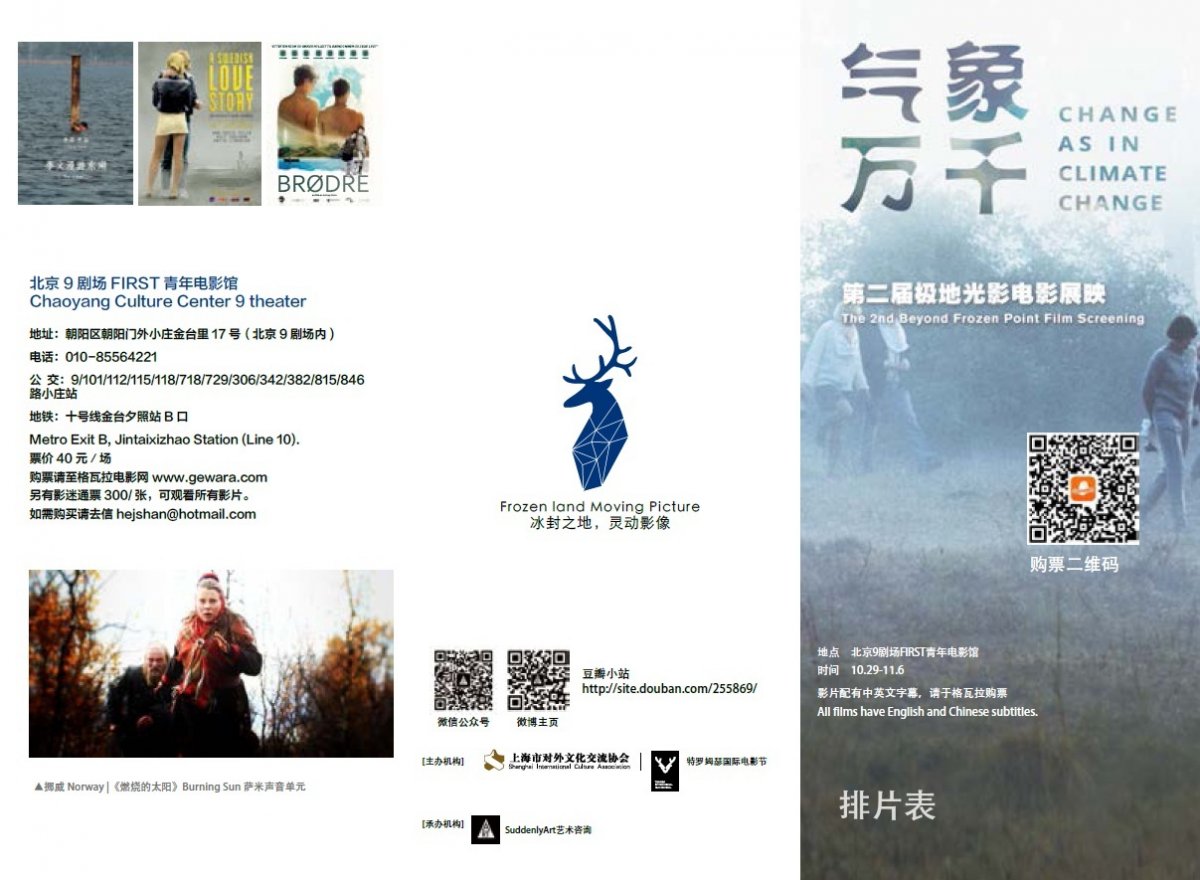 Catch Northern and Arctic films throughout November 6 at the 2nd Beyond Frozen Point Film Fest with a focus on climate change at Chaoyang Culture Center 9 Theater. For titles and specifics click on the event listing link above. Various times and prices. Chaoyang Culture Center 9 Theater