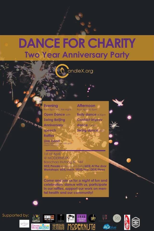 With the simple idea of promoting awareness on depression, and providing social support, CandleX was founded on April 1 2015. Since then, people have found support at their mental health workshops, peer support groups, community campaign projects, and through information in their online classrooms and columns. Modernista will open their doors at 4pm for dance workshops before the party begins at 8pm. Join for a night of fun, celebration, dancing, raffles, and to support CandleX's work on mental health in our community. RMB 60. 8pm. Modernista