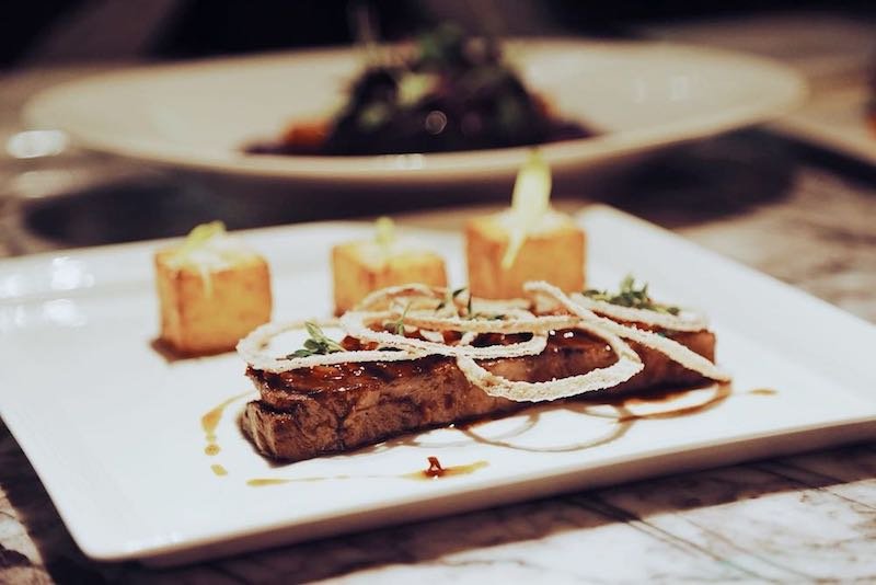 This culinary DNA is on display at InfraRouge’s restaurant, which serves contemporary French dishes with the occasional Far Eastern twist. The restaurant is the perfect spot at any time of the day, the south-facing floor-to-ceiling windows offering ample natural light in the daytime and a view of the sparkling lights of Taikooli North and the Intercontinental Sanlitun in the distance once the sun goes down. The menu transitions from day to night as smoothly as the space, from competitively-priced business lunch sets to Instagram-worthy afternoon teas to exclusive a la carte evening dining.