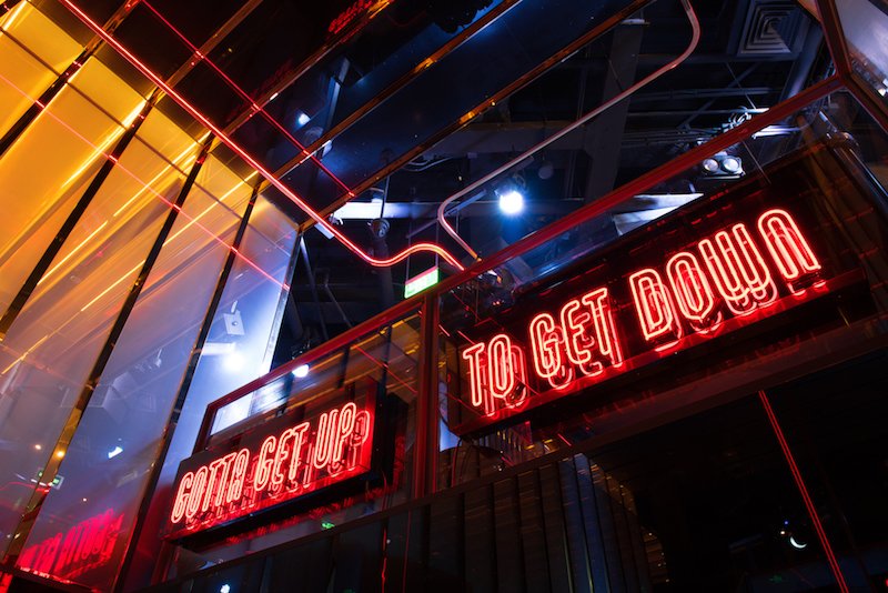 InfraRouge’s team of talented mixologists mix delicious cocktails that, along with a roster of international DJs, are sure to get you up onto the starkly lit, jet-black painted dance floor. Fans of Bar Rouge’s popular themed parties will be excited to hear that InfraRouge is bringing them to Beijing, including their infamous jungle party, when the space is transformed into a tropical rainforest of vines and trees and becomes a home for Beijing’s wildest party animals, or their popular Diisney Trash Halloween Party, photos from which can be seen below.
