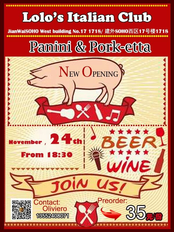 If you're looking for a reason to drop Lolo's, they'll throw their opening party this Friday, Nov 24, from 6.30pm. Bookings for attendance and a small dinner menu cost RMB 35 advance or RMB 50 on the door.