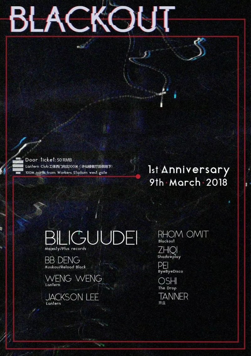 Not only is Blackout back, but it's already time to celebrate the first anniversary of this eclectic, boundary-pushing party series that covers genres like techno, minimal, acid, deep house, and more. DJs Biliguudei from Ulaanbaatar, Mongolia, will spin alongside the usual Lantern faces. 11pm. RMB 50. Lantern