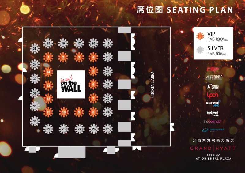 Brawl on the Wall takes place on Jun 1, 7pm onwards, at the Grand Hyatt Beijing. Tickets for the event are bought per table of 10 and prices depend on how close to the action you want to be. VIP tables cost RMB 12,000 per table whereas "silver" tables cost RMB 7,000 i.e. RMB 700 per seat – not bad for one of the swankiest evenings of Beijing's sports calendar. To reserve a table, contact Nina at 134 8230 8626 or email at nina@chinasportspromotions.com. For more information, read the event listing here.