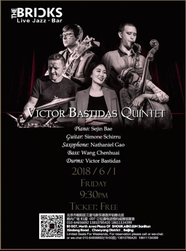 Columbian Percussionist Victor Bastidas is according to this write-up ‘one of the best drummers live in Beijing’. He’ll be fronting will his top-notch jazz quintet this Children’s Day at The Bricks. FREE