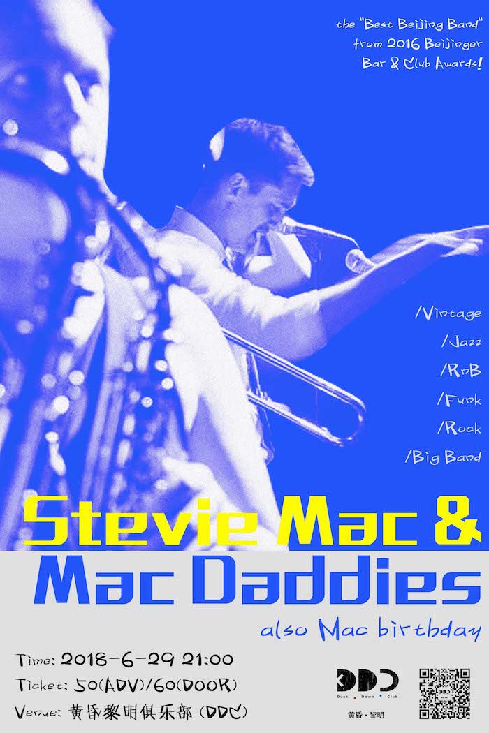 The ever-expanding (ten members deep at the moment) jazz-pop troupe Stevie Mac and The Mac Daddies bring their vintage approach to contemporary music to DDC for some good times as they celebrate the birthday of their frontman. RMB 60