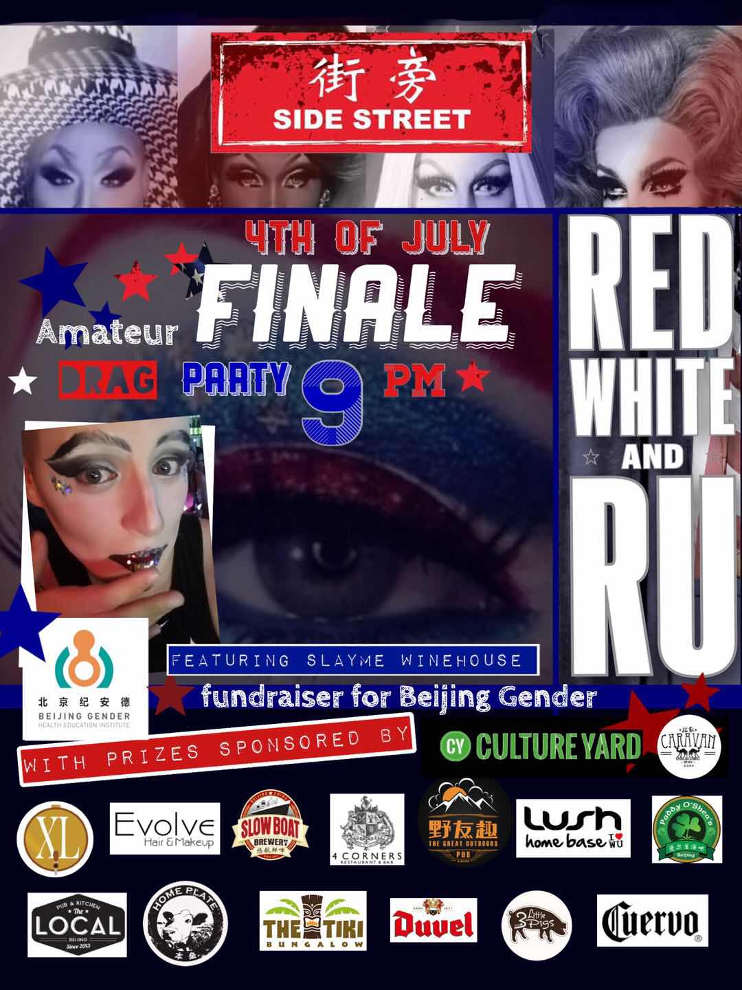 Side Street celebrate this July 4th with a slightly less conventional but no less important occasion: the finale of RuPaul's Drag Race and with a drag party of their own. After airing of the episode there'll be lip syncing, drag queens, and a charity raffle for the Beijing Gender Society with the help of numerous Beijing establishments. Best yet, if you come in drag your first drink is free. Free. 9pm. Side Street
