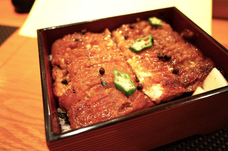 The unadon (RMB 180) features fillets of European eel, which, we were told, are 30 percent lean meat and 70 percent fat like they are in Japan. The fresh eels are grilled in the kabayaki (蒲烧) style, have an attractive sweet glaze, and a citrus tang from the sansho peppers imported from Arima Onsen, Japan.