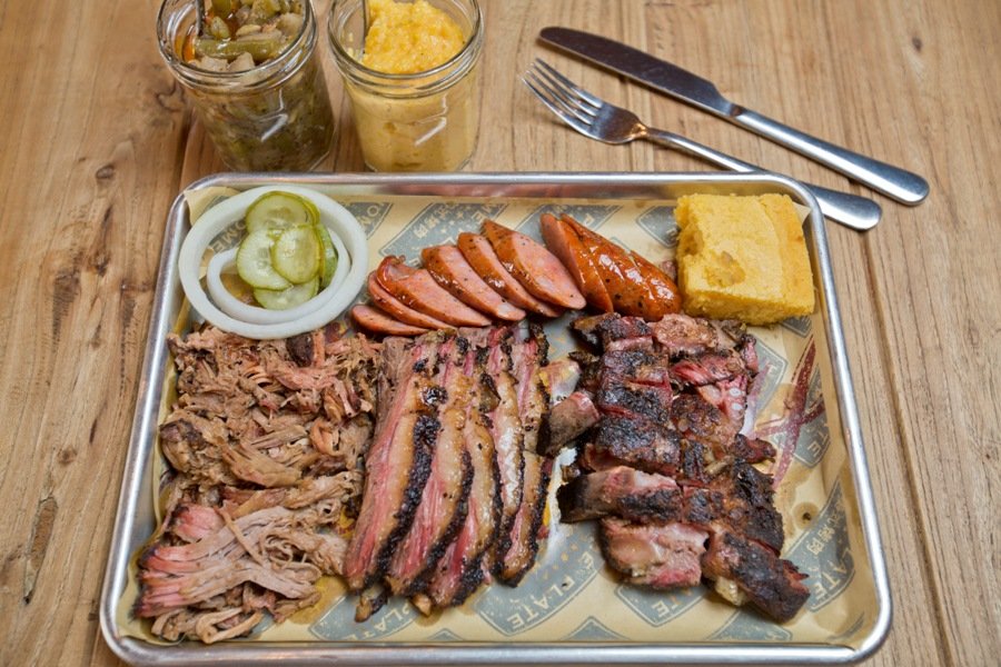 Jing-A, a six-year-running North American creation was founded by two long-time Beijing expats and as well as featuring multi-award-winning craft brews, also sports a damn fine range of classic Amerian grub. Of that belly-rubbing hot-off-the-grill fare, Emmy Andréasson, manager of Jing-A explains, "The Carnivore Platter is a ridiculously big American-sized portion of all our best Texas-style barbecue meats: beef brisket, pulled pork, sausage links, and pork ribs, and it comes with coleslaw, pickles, and grilled mantou on the side. All meats are slow-smoked in our custom built smoker in the back of the Brewpub. It feeds between three to four people, so it works great as a shared meal over a pint (or two)."