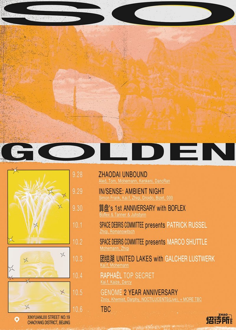 Zhao Dai's nine-day Golden Week extravaganza kicks off Friday evening with sets by local favorites like Aled, Tom, Mohemann, Kenkeni, and DanceRan. The evening will serve as a fun appetizer for an increasingly enticing week of sets that culminates with some yet to be announced sets at the club later on in the Golden Week holiday. Price TBD. 10pm. Zhao Dai