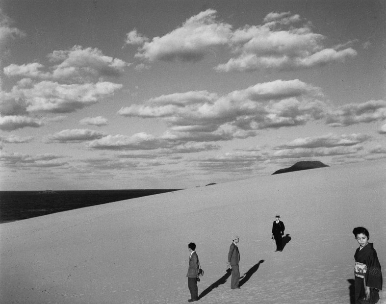 Described as a “sedentary adventurer,” Ueda was extremely attached to his birthplace, Tottori, in western Japan. This small city is best known for its nearby sprawling sand dunes, a setting that Ueda chose for many of his earlier works and for which the aforementioned series was named. Mostly shot in black and white, the photos he took among the dunes capture the outlines of his subjects, who are both playful and meticulously composed, with the landscape acting as a stark backdrop.