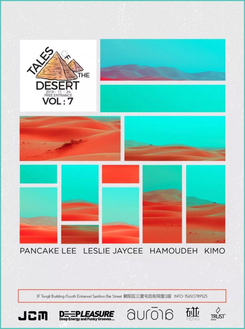 DJs Kimo Elasly, Leslie Jaycee, Hamoudeh, and Pancake Lee make up the lineup for this desert-hot party. Kimo, a veteran of Beijing's nightlife scene, broke through in 2009 with his Kontact parties before founding his new series, Tales of the Desert, in 2017, meant to evoke the gritty, heatwave sizzle of his Arabic heritage. Free. 10pm. Aurora