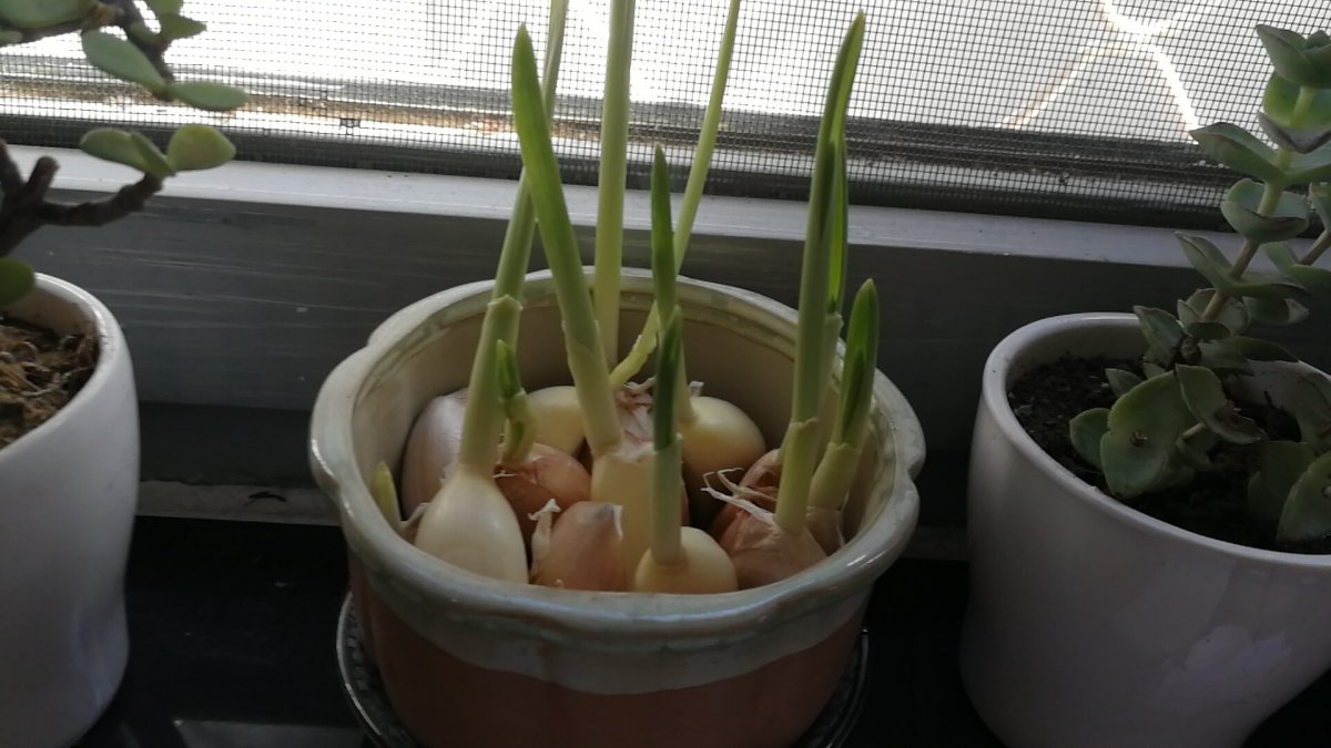 Anybody who has found a forgotten garlic clove in the back of their fridge only to see that it's started to grow legs will be unsurprised to learn that garlic involves very little maintenance to regrow. All they need is plenty of light and fresh water. Take healthy garlic cloves and place them in a container with a little water. It's best to use a glass container so that you can see the level of the water to ensure they won’t dry out or begin to rot. The garlic cloves will begin to push out bright green stalks after a few days. These can be used to garnish dishes.