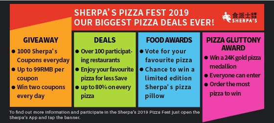 When you vote, not only will you win a coupon with a value of up to RMB 99 (minimum spend RMB 100) but also be in with the chance of winning a special edition Sherpa’s pizza pillow!