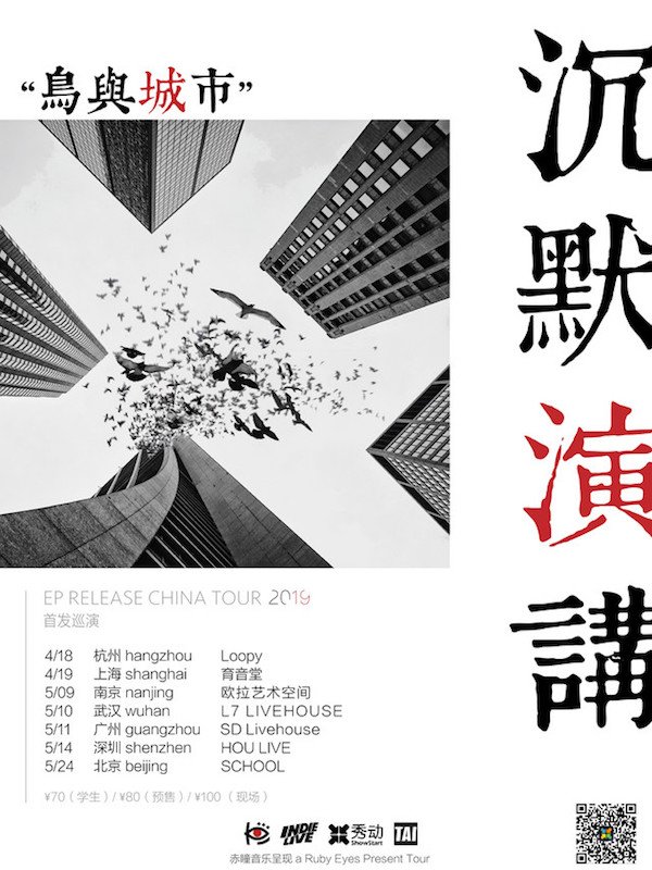 Indie rock that swoons one moment and explodes the next, Silent Speech are one of Beijing’s unsung heroes – veteran rockers who have been working the scene for a solid decade. Effortlessly maneuvering from one style to another they’re a melodic, emotional wry, and instrumentally charged blend of '90s alt-rock that’s above all else, genuine and assured. They close out their nationwide tour tonight in support of their EP so expect a homecoming party like none other. Support from the highly charismatic and distinguished Dan Taylor. Read our recent interview with Silent Speech here. RMB 100
