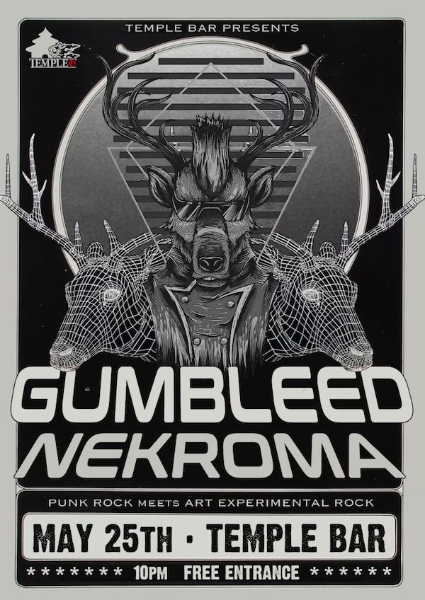 Nekroma – an atmospheric carnival of sounds that blends art rock, skateboard guitar, metal doom, and synths – bring their alter-egos to Temple Bar alongside anti-establishment punk veterans Gum Bleed, who are always the kick in the ass one needs Saturday night. FREE