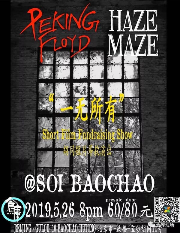 Beijing's premier Pink Floyd tribute band bring their vast and ever-increasing collection of cuts from Pink Floyd's most creative years as they join all-star ensemble alternative rockers Haze Maze to help fundraise for the short film Hutong Drifters, written and directed by Jenny Man Wu. RMB 80