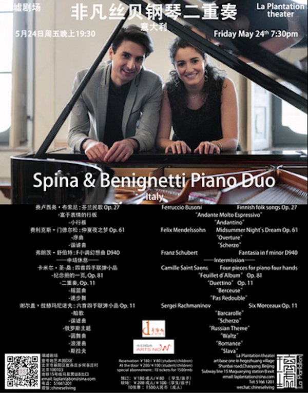 Eleonora Spina and Michele Benignetti are two compelling, talented young musicians that come from strong and varied backgrounds as soloist and chamber musicians. Their acclaimed recording of Brahms’s complete works for two pianos was praised by audiences and critics alike – they’re the real deal. RMB 200