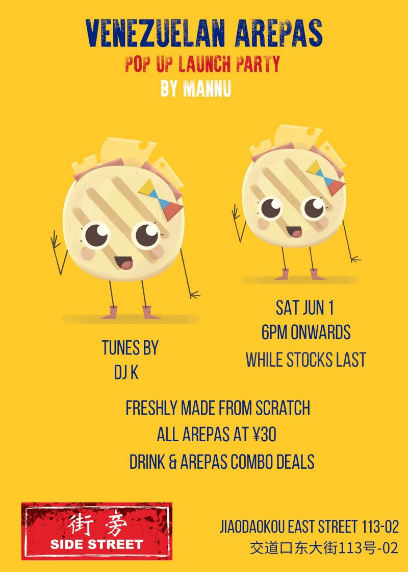 On Jun 1, Side Street host a pop-up with Venezuelan chef Mannu. He'll cook up traditional Venezuelan arepas, a Venezuelan staple made from ground maize formed into a flat, round patty and then stuffed with a variety of fillings. The arepas will be available from 6pm (while stocks last).