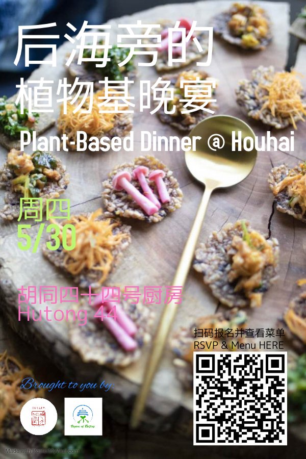 Vegans of Beijing are teaming up with creative Chinese restaurant Hutong 44 to put on a special event featuring plant-based whole foods. Expect dishes inspired by ancient techniques and recipes, featuring organic and fermented ingredients. The dinner is priced at RMB 150 per person for a shared menu. Scan the QR code on the poster above to pay and register.