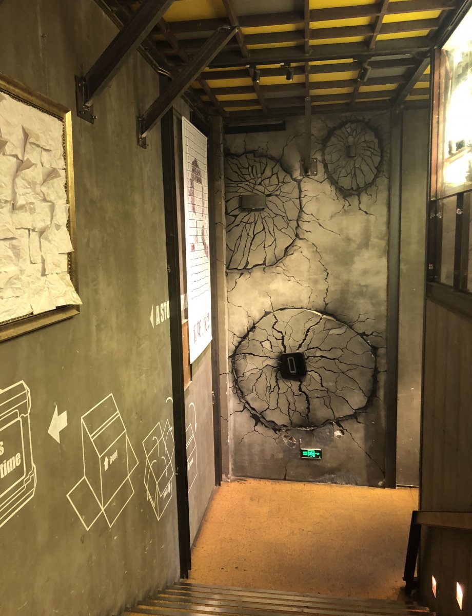 Blink and you may miss it, which is not to say that the café is small. In fact, it amounts to three whole floors in the cavernous, hanger-like third floor of the Beehive Theatre. Heading upstairs, you’ll be struck (figuratively) by the giant imitation USB ports lodged in the stairwell’s walls (literally), each of which has fake cracks spreading out to underscore their impact and giving an idea of the type of quirky decoration you're in for.