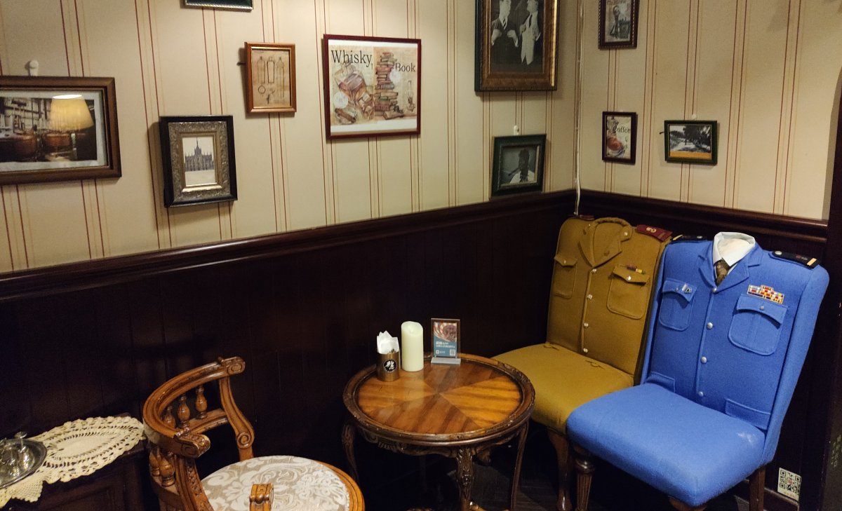 Knick-knacks and miscellany are the talking points that fill the lull in conversation at Oye Bar. Taking over the space once occupied by Charlie Chaplin Bar, Oye continues the former cocktail lounge's vintage legacy with a decor that immediately catches the eye. It’s not just that the walls of this cocktail lounge are covered in a mixture of vintage pictures and handfuls taken from a hoarder’s crate; almost every corner of the place strives to provoke discussion, from the quasi-perpetual motion machine on the bar, the kind your physics teacher would keep on her desk, to the chairs upholstered with men’s outfits and old military uniforms.