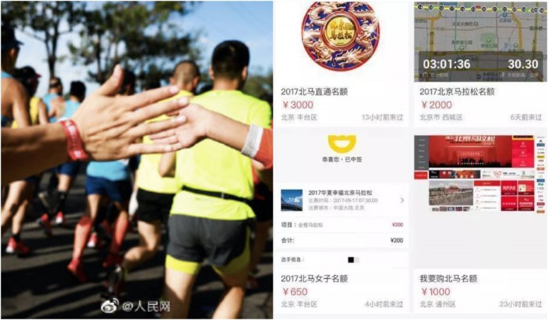 Netizens are following the marathon scandal under #转让北马名额违法# (illegal transfer of Beijing marathon quotas).