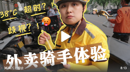 周末看到微博上的视频博主@曹导 贴出来的视频,她去体验了几天外卖骑手,给我们展现了当“外卖小哥”不为人知的一面。