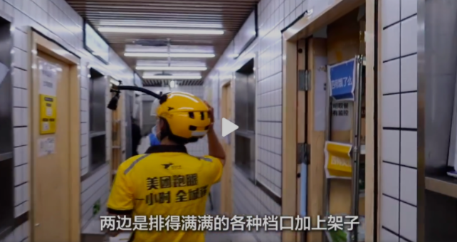她经过多次询问又绕了很多圈子从地铁口跑到地下的通道,无奈还是被挡在外面,眼看着要超时,最后是随同她拍摄的朋友替她取了订单。在等待的时候,她又被告知需要站在门外等待。