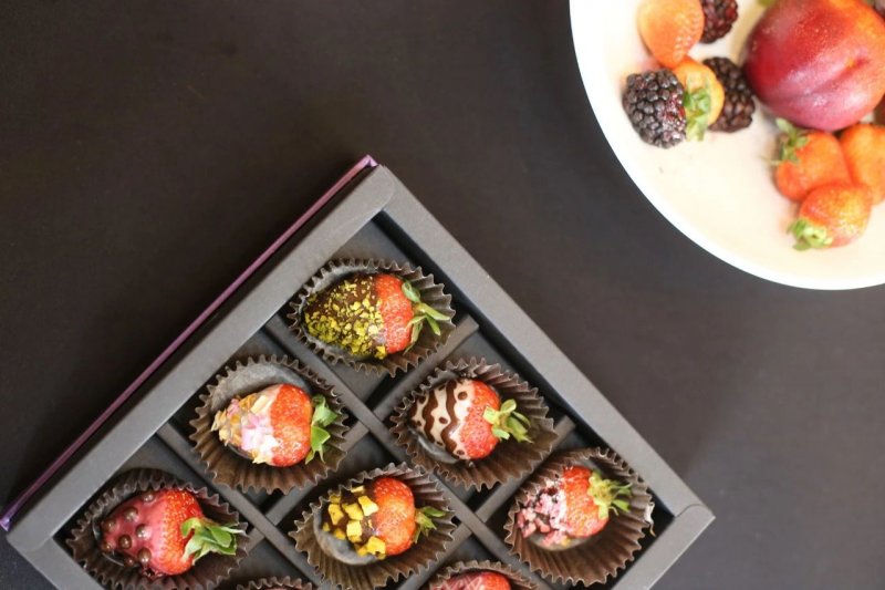 此外,随着新款莓果下午茶一并推出了巧克力草莓礼盒,包含9颗巧克力,每一颗都被装点得独具特色。购买新款下午茶的客人可以挑选礼盒中任意两款。若想尝尽所有草莓巧克力的独特味道,抑或与朋友家人共享,亦可提前两天预定礼盒。