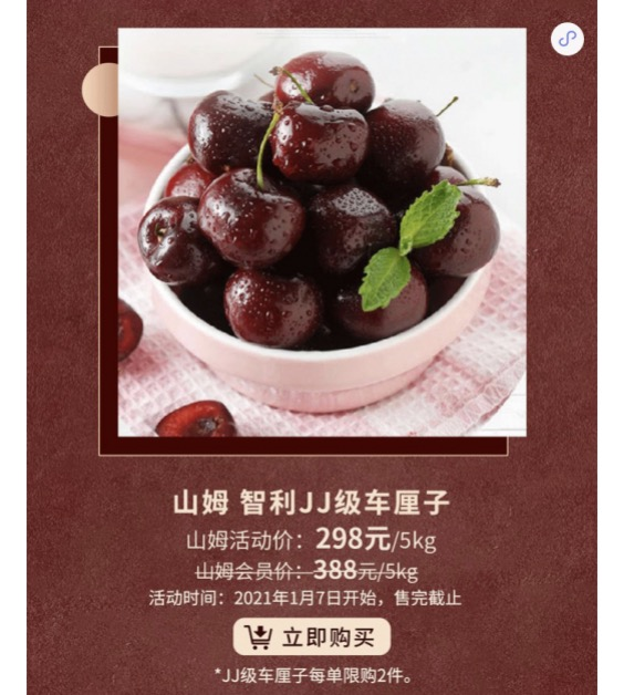 Prefer to read the latest about Beijing in Chinese? Follow our Chinese edition, theBeijinger中文版, on WeChat. 从没想过, 曾经高攀不起的车厘子竟然也有降价的一天! 这几天,“车厘子价格腰斩”的话题冲上了热搜前排。许多网友都表示自己终于可以在有生之年实现车厘子自由了! 江苏某车厘子商家称,往年这个季节的车厘子至少要卖500块一箱,而今年只需要200块左右! 而究其原因,则要感谢远在南美洲的智利。 因为中国进口的车厘子大部分来自智利,而今年智利车厘子产量又有了30%的增长,货源充足是造成目前车厘子价格走低的重要原因。 此前,智利驻华大使馆商务参赞娜塔就已经表示,今年智利的天气状况良好,2020-2021产季车厘子实现了丰收,预计今年的智利车厘子将有50万吨左右的车厘子进入中国市场。 不过在2020年底,智利车厘子刚开始上市的时候,行情还并非如此。第一批车厘子抵达北京的时候仅有1条柜(3680件)左右的量,根本不够北京各大商超市场分的。因此那时候的价格仍然在300-400元每公斤。 但随着进口量增大,各大生鲜平台的货源不断充足,从12月开始,车厘子售价基本就稳定在每斤60元-80元。加上年关将至,各大电商生鲜平台纷纷加入促销大战,目前的车厘子价格已经低至每斤30-40元了。 某东甚至不惜把车厘子作为年卡会员的赠品,一边购物看视频,一边“日啖车厘子三百颗”,想想不要太开心。 车厘子万万没想到自己有一天会沦落成电商促销的工具子,而打工人们也万万没想到自己有一天竟会打开APP,开启属于自己的车厘子自由 然而毕竟是第一次与如此高贵的水果亲密接触,面对着一系列中英夹杂的描述难免无所适从,别急,今天就让我来带大家一起学习一下高贵水果的分级体系,让你从此挑果不求人。 通常来说,智利车厘子通常会按直径大小分为6个等级,每个等级还会分红和黑。 具体的分级标准如下: 这里的字母分别表示: 部分品牌车厘子会在标注级别后加上D或L,代表车厘子的色值: D(dark)代表深色果; 1. 看箱头标签 箱头信息主要包括品种、大小、规格、颜色、重量、日期(存放越久口感越差)。 采购时可轻捏感受新鲜程度,不用很大力,带有结实回弹的质感就非常新鲜,如果轻按直接凹进去的,代表不新鲜了。 果梗较绿则表示新鲜,车厘子采摘时,果梗为绿色,放久了便开始发黑甚至脱落,营养也打折扣。 颜色较深较甜,微浅偏酸,遵循水果挑选的一般规律,颜色深的一般比较甜,自然营养更高。 果形圆润饱满,表皮无褶皱,成熟车厘子表皮会有水果天然圆润的光泽,那些暗淡无光的车厘子,不建议购买。 目前山姆会员店的JJ级车厘子正在促销,许多电商平台也都有各类品质的车厘子,多蹲一蹲打折信息,相信你也能在年初拥有属于自己的车厘子自由。 宅家享美味 终于把车厘子买回家了,如何用这高贵的水果制造出更多美味?这里推荐大家几个宅家自制食谱,让你足不出户也能尽享车厘子的味蕾轰炸! 1. 霸气酸奶车厘子茶 想和奶茶又不敢出门?不如自己在家做一杯霸气满满的车厘子酸奶果茶,味道完美复刻某饮品店同款,一口下去保证你灵魂都升华了。 用料: 冷茉莉花茶(自泡或用茉莉清茶都可以)150~200ml 做法: (1)车厘子去核; 2. 车厘子果酱 用料: 柠檬3个 做法: (1)车厘子洗净去核加入白糖、冰糖封保鲜膜冷藏3个小时; 3. 车厘子蛋挞 用料: 挞皮 : 蛋挞液: 做法: 挞皮: 蛋挞液: 4. 车厘子鸡尾酒 用料: 车厘子 3个 做法: (1) 车厘子去核;
