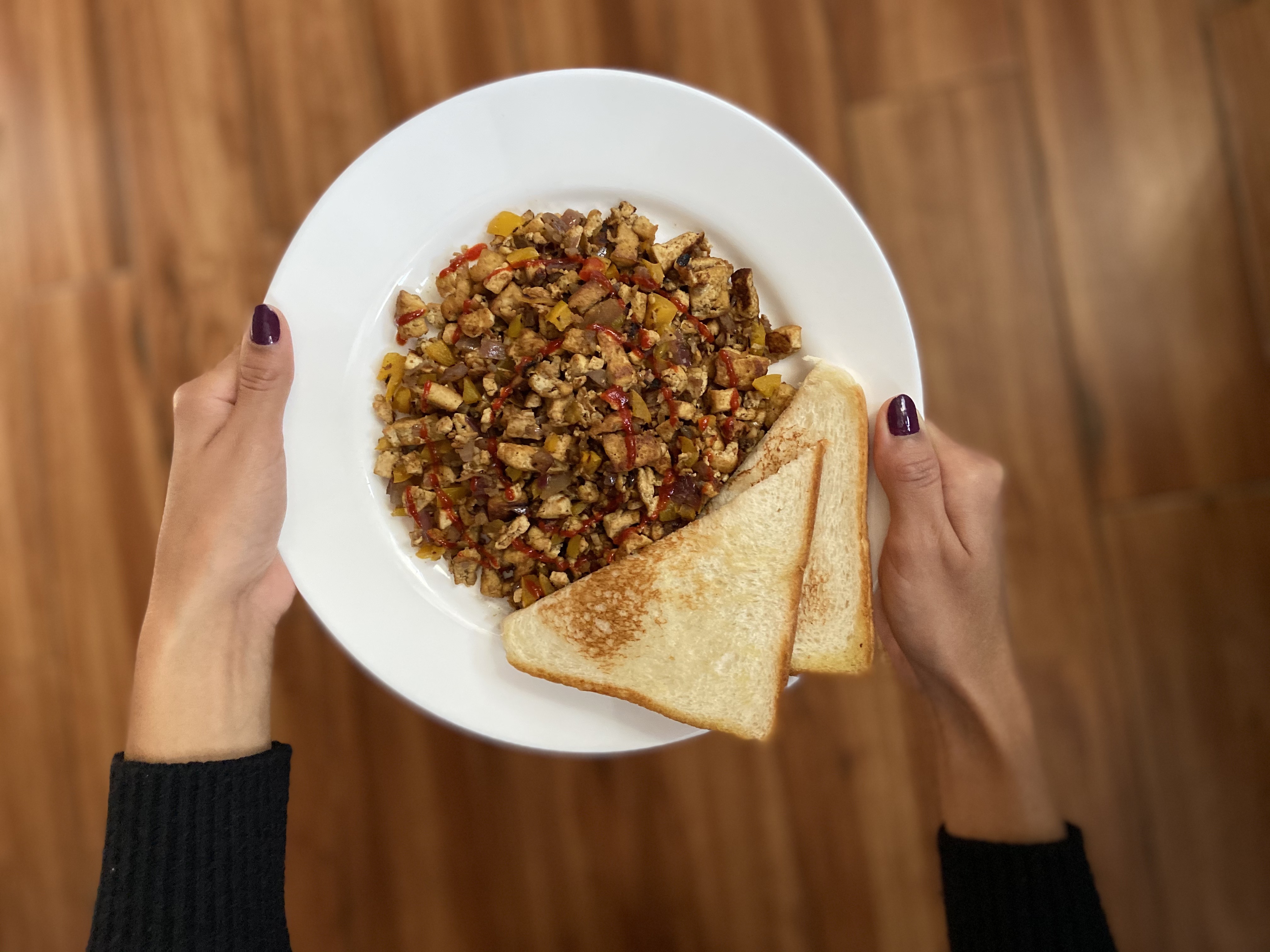Friends and family notwithstanding, the number one thing I miss about living in Los Angeles has to be the plethora of brunch spots that serve tofu scrambles in various forms. Some of my fondest memories are of hungover Saturday mornings, tucking into a tofu scramble breakfast burrito with an iced coffee, water, and pint, a sometimes futile effort to get my head on straight. Unfortunately, I’m yet to find a single establishment in the capital that offers such a weekend experience, so I’ve taken matters into my hands. (For what it’s worth, I’ve been cooking up this delicious dish long before I moved here.) And now it’s time I share my secret recipe with all of you! Whether you’re vegan, vegetarian, or veg-curious, this tofu scramble is a surefire way to beat back the most hellish of hangovers, though it fares equally well on sober mornings too.