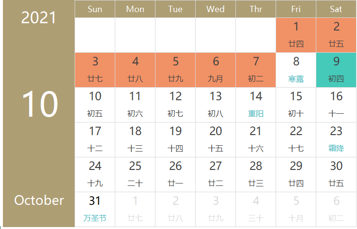 Friday, Oct 1 through Thursday Oct 7