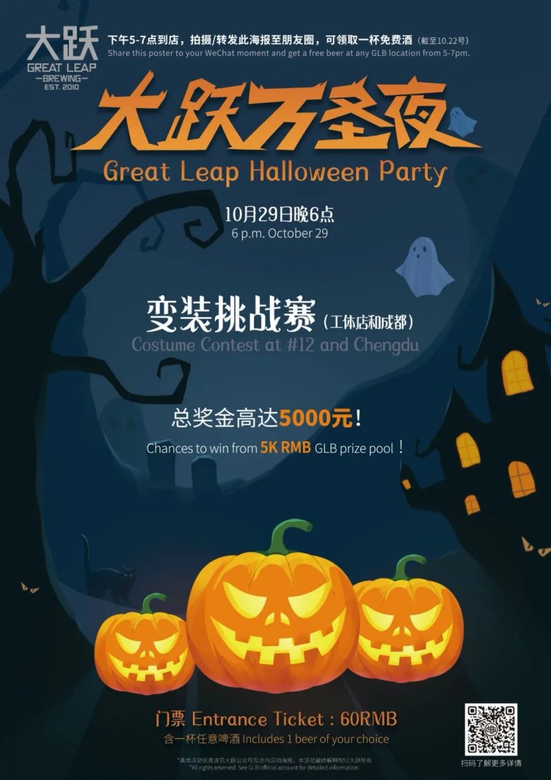 Slap on your spookiest costume and get ready to make people scream for the chance to from an RMB 5000 prize pool at Great Leap Brewing's #12 Taproom!