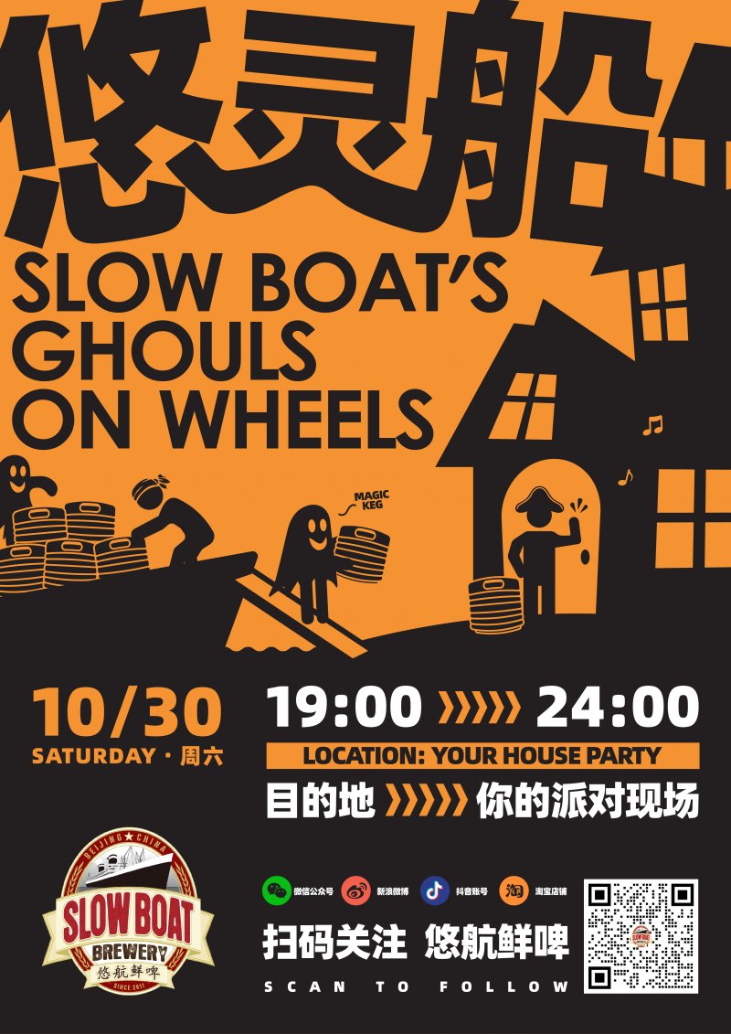 Slow Boat is gearing up to hit up YOUR house! The Boat's drunken ghouls will crash 5 different Halloween house parties on Oct 30 with their special Magic Kegs and other goodies. To enter your party, follow Slow Boat's official WeChat and leave a comment on their Ghouls on Wheels post. Then, if your party is chosen, the ghouls will arrive at a pre-coordinated time (7pm to 1am) and you and your friends will have 20 minutes to chug as much as you can before they move to the next bash.