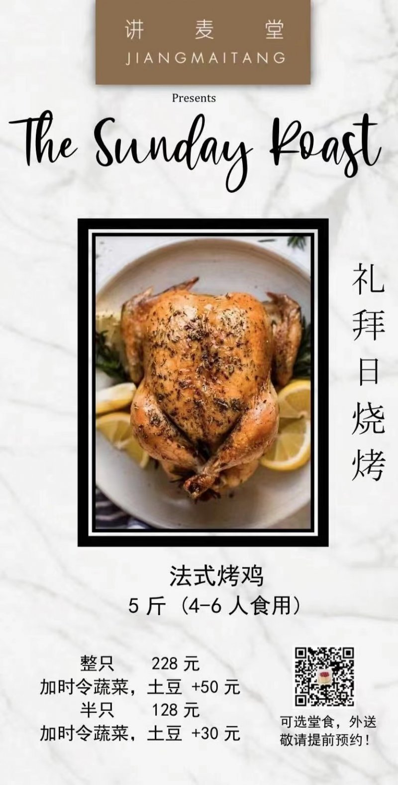 JiangMaiTang’s Sunday Roast needs to be ordered two days in advance. All you have to do is scan the QR code in the poster below, add their WeChat, then place your order.
